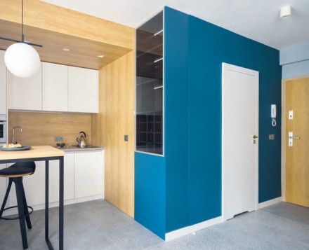 Odcienie niebieskiego mają swoje ważne miejsce w przyrodzie, stąd wywodzi się wiele przypisywanych im cech uzasadniających ich obecność w aranżacjach wnętrz. To kolor otwartej przestrzeni, nieba i czystej wody. Niebieskości w naturze wywodzą się ze zjawisk optycznych. Bezchmurne niebo jest niebieskie z powodu tzw. efektu Rayleigha (rozpraszanie światła na cząsteczkach atmosfery), natomiast lekko niebieska barwa czystej wody wynika z częściowego pochłaniania przez nią czerwonej składowej światła białego. To dlatego kolor ten kojarzy się z odczuciem dali, przestronności, czystości. W przeciwieństwie do innych barwników łatwo dostępnych w naturze niebieski uważany był za barwę szlachetną, jedną z najtrudniej osiągalnych i drogich. Przez wiele stuleci otrzymywano go ze sproszkowanego lazurytu, minerału cenionego bardziej od złota. Wraz z rozwojem handlu morskiego stał się popularny w naszej kulturze i wtedy nadano mu nazwę azurreum ultramarinarum, co znaczy „lazuryt zza morza”. Był to ostatni odcień podstawowy uzyskany w sposób sztuczny przez człowieka. Wynalezienie syntetycznej ultramaryny na początku XIX wieku upowszechniło ten kolor, wtedy też stał się popularną barwą elewacji polskich chałup wiejskich. Dlaczego domy malowano właśnie na niebiesko? Wybór uzasadniano względami praktycznymi – wierzono, że kolor ten chroni je przed insektami – odstrasza owady, w przeciwieństwie do żółtego, który je przyciąga. Mieszkańcy odkryli również, że gdy dodadzą do wapna ultramaryny, kury nie dziobią ścian domu. Uważano też, że niebieski ma właściwości antyzapalne. No i wreszcie nie bez znaczenia była symbolika barwy niebieskiej, jako niebiańskiej, chroniącej przed złem. Nazwa koloru wywodzi się przecież od słowa „niebo” – do XIV wieku w języku polskim „niebieski” oznaczało „przynależny do nieba”. Kolorem tym malowano szaty Maryi, podkreślając w ten sposób jej związek z niebem. Dopiero później termin ten został przyjęty jako określenie barwy. Kolor niebieski w naszym kręgu kulturowym związany jest również z kreatywnością. Wystarczy spojrzeć na prace Picassa – miał on w swojej twórczości tzw. okres niebieski – czy sylwetkę francuskiego awangardzisty Yvesa Kleina, który swój ulubiony malarski odcień opatentował pod nazwą International Klein Blue. Szlachetny granatowy zadomowił się we wnętrzach przedwojennego stylu art déco, jako bazowy kolor boazerii czy tapet. Również dzisiaj doskonale prezentuje się w połączeniu z różnymi wzorami charakterystycznymi dla art déco, takimi jak romby, zygzaki czy tzw. marokańskie koniczyny. Po II wojnie światowej niebieski obecny był też w polskim dizajnie lat 60. i 70., gdzie śmiało łączono go z zielonym, często dodając do obu kolorów odcienie rudości. Wywodzące się z tego okresu zestawienia kolorystyczne to również źródło współczesnych inspiracji stylu mind cenaury modern.