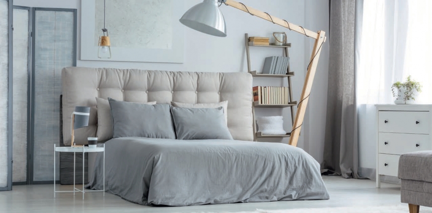 Zagłówek nad łóżkiem może być akcentem przykuwającym uwagę, detalem wzbogacającym całe wnętrze i ciekawą ozdobą. Ekspozycje łóżek z zagłówkiem w salonach meblowych budują wyobrażenie, że na taki luksus możemy sobie pozwolić dysponując dużą sypialnią. To prawda, urok tego rozwiązania docenimy w dużym pomieszczeniu, ale nic nie stoi na przeszkodzie, by zdecydować się na taki zakup również wtedy, gdy nie dysponujemy dużą przestrzenią. Małe sypialnie charakteryzują się przytulnością i zacisznością, a łóżko z zagłówkiem tylko ten klimat uzupełni. Warto jednak zastanowić się wtedy nad wielkością oraz kolorem i wybrać mniejszy, a także lżejszy wariant. Na lekkość może wpłynąć kolor i faktura. Im jaśniejszy i prosty wzór, tym mniej przytłaczający i przyciągający uwagę.