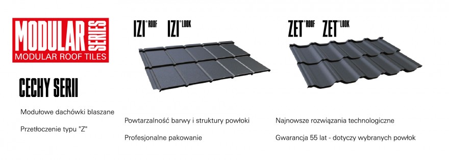 Linia najnowocześniejszych modułowych pokryć dachowych, wyposażonych w innowacyjne rozwiązania technologiczne i perfekcyjne dopracowanie pod kątem estetyki. Dachówki produkowane są w formie niewielkich dwumodułowych arkuszy, które w znacznym stopniu ułatwiają i przyśpieszają transport oraz montaż.
