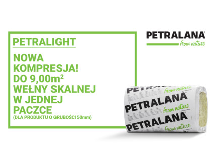 Poprawa tego parametru to gwarancja oszczędności zarówno w cenie transportu jak i oszczędność miejsca potrzebnego do składowania materiału na budowie. Nowa kompresja pozwala zmieścić w jednej paczce produktu PETRALIGHT do 10,80 m2 wełny skalnej o grubości 50 mm. Warto zaznaczyć, że produkt, po otwarciu skompresowanej paczki, powraca do deklarowanych wymiarów. Aktualnie płyty produkowane są w nowym rozmiarze 1200 x 600 [mm], co umożliwia ich łatwą i ergonomiczną aplikację w izolowanych przestrzeniach konstrukcyjnych oraz dystrybucję w praktycznym i bardzo wygodnym do transportu opakowaniu.”