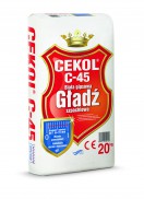 Stosując Białą gładź szpachlową CEKOL C-45 uzyskujemy idealnie gładką, białych i równych powierzchni. CEKOL C-45 to produkt na bazie najwyższej klasy, naturalnego, białego gipsu oraz białych wypełniaczy i środków modyfikujących, dzięki czemu ma doskonałą przyczepność do podłoża i może być stosowana w jednorazowej warstwie, aż do 10 mm. Biała barwa produktu pozwala na ograniczenie ilości wymalowań dla uzyskania pożądanego efektu barwnego. Gładź nie żółknie pod wpływem światła i jest produktem nietoksycznym.